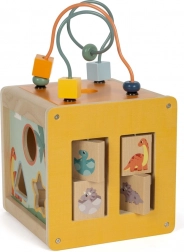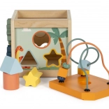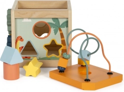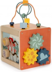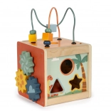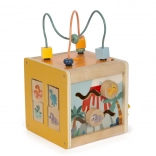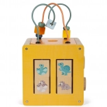 Le labyrinthe de perles sur le dessus du cube développe la coordination œil-main et la motricité fine.