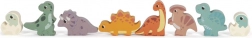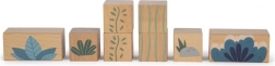 Le kit comprend 6 blocs de dinosaures et d'autres blocs avec des motifs d'arbres, de montagnes et de soleil. Chaque bloc est fabriqué en bois certifié FSC à 100%, garantissant que le matériel provient de forêts gérées de manière responsable. En plus du plaisir, le jouet inspire les enfants à explorer la nature et l'histoire des créatures préhistoriques.