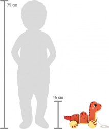 Le mignon dinosaure ravira chaque jeune enfant lors de ses premiers pas. Grâce à sa construction à trois segments, il produit un effet amusant à chaque traction de la ficelle. Avec ses roues en caoutchouc, votre petit dinosaure peut facilement se déplacer tout en offrant une conduite silencieuse.