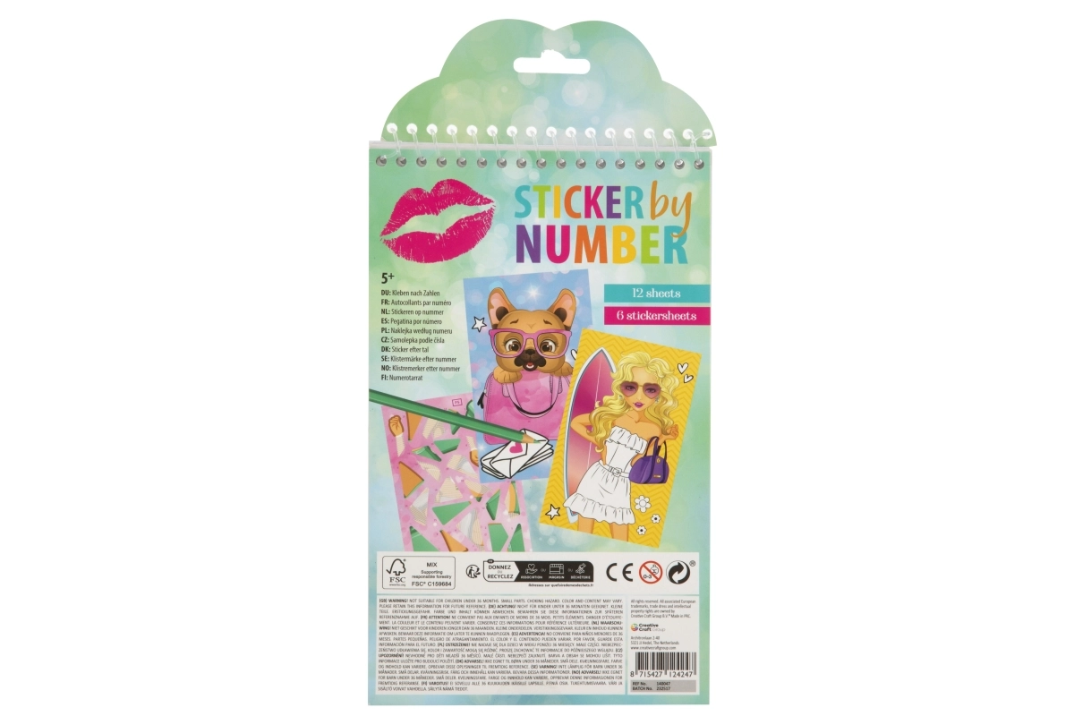 Ce set créatif sous forme de bloc à spirale offre une création confortable et bien organisée. Chaque modèle est numéroté et correspond aux autocollants : il suffit de coller selon le numéro pour voir apparaître des motifs colorés sous vos yeux. Idéal à la maison, en voyage ou comme cadeau original pour petits et grands créateurs.