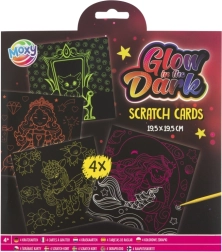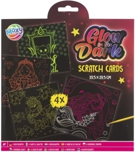 Un kit créatif d'images à gratter au motif fille ravira les petites créatrices. Il contient 4 pièces de 19,5 × 19,5 cm qui, après exposition à la lumière, brillent dans le noir. Idéal pour les enfants de 4+ ans.
