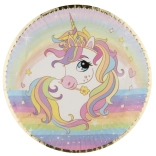 Apportez une touche de magie à votre table avec des assiettes au motif licorne arc-en-ciel. Un liseré doré élégant et un bord légèrement cannelé donnent du style à votre dressage, que vous prépariez un anniversaire, une fête d’enfants ou un thème féerique.