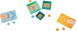Pour encore plus de fun, essayez des variantes de règles : bonus de +5 points pour le plus grand nombre de jetons dans les cibles, retrait d’un jeton adverse en le touchant à l’atterrissage, échange d’un jeton posé sur le bord de la cible, jeu les yeux fermés, uniquement avec la main non dominante, ou pénalité de −1 point pour les jetons hors cible. Le jeu encourage la compétition, la motricité fine et la coordination œil–main.