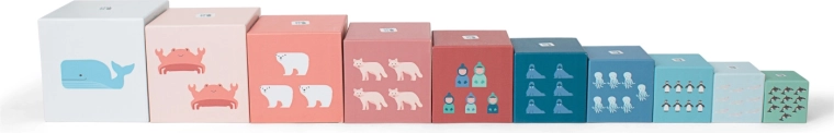 Cette pyramide empilable contient 10 cubes de dimensions progressivement décroissantes. Les enfants peuvent construire une tour selon la séquence des chiffres et des images d’animaux, ou aligner les cubes côte à côte. En jouant, ils exercent en douceur le comptage, la concentration et la perception spatiale.