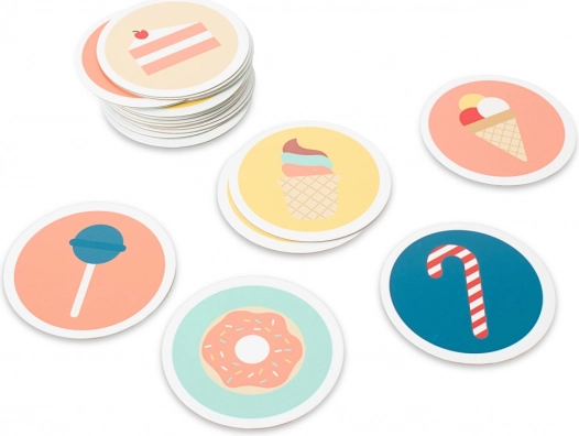 Sucettes, glaces, bonbons et donuts – des motifs vifs qui attirent l’œil et aident à reconnaître rapidement les paires.
