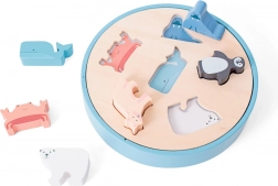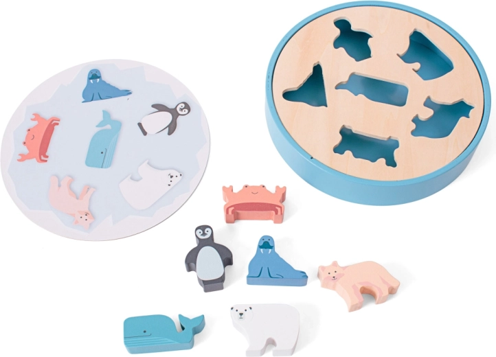 Ce puzzle d’encastrement en bois de qualité avec des animaux (phoque, ours polaire, crabe, manchot, renard et orque) est une première énigme idéale pour les petits explorateurs. Les pièces sont robustes, tiennent bien dans la main de l’enfant et, grâce à leurs contours nets et leurs illustrations, se placent facilement à leur emplacement.