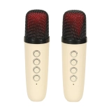 Set de karaoké avec haut-parleur Bluetooth 10 W, 2 microphones sans fil et LED RVB – crème