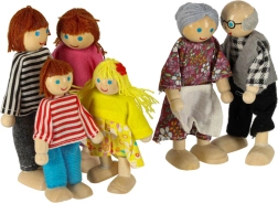 Famille complète de 6 pièces : grands-parents, parents et enfants. Les différentes hauteurs (env. 11,5 cm et 9 cm) aident à apprendre les rôles et les relations familiales.
