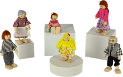 Ce set en bois représentant une famille est l’accessoire idéal pour toute maison de poupées. Les figurines diffèrent par leur taille (adultes/grands-parents env. 11,5 cm, enfants env. 9 cm) afin de refléter fidèlement les générations, et les vêtements textiles leur donnent un aspect naturel et ludique.