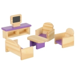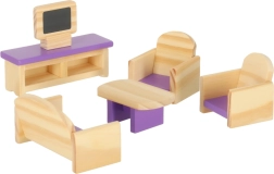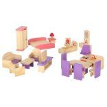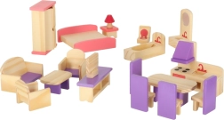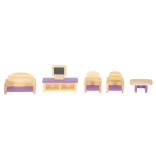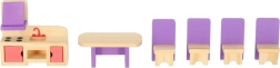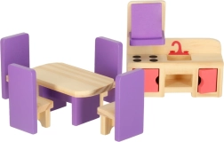 Offrez aux enfants une dose inépuisable d’imagination avec un ensemble complet de miniatures en bois pour tout l’équipement domestique. Le mobilier dans des tons violets modernes ressort magnifiquement dans chaque maison de poupées et, grâce à sa fabrication robuste, résiste au jeu quotidien.