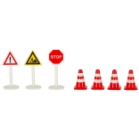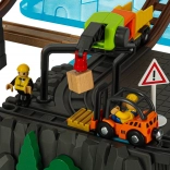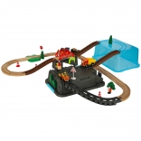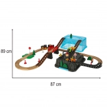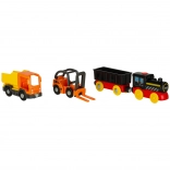 - locomotive avec wagon, grue, chariot élévateur, 4 figurines, 6 arbres, 3 panneaux de signalisation, 4 cônes, palette et cargaison, boîte de rangement, éléments de voie