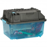 La solide boîte bleue sert d’élément de la voie pendant le jeu et, ensuite, de solution de rangement pratique. Elle garde toutes les pièces au même endroit.