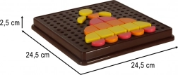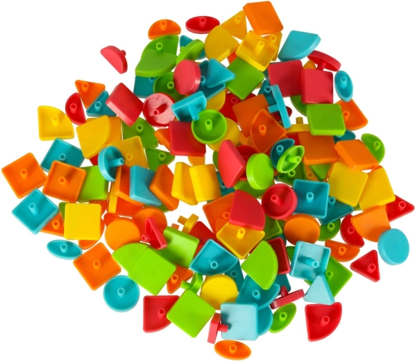 Insérer de petites pièces dans les ouvertures du plateau entraîne les doigts, la préhension et la coordination œil-main, idéal pour les enfants d’âge préscolaire.