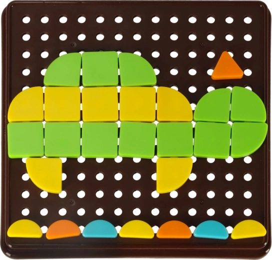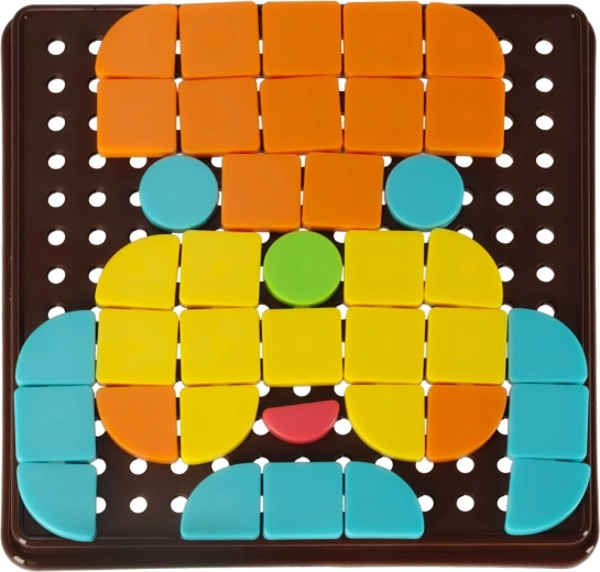Ce puzzle mosaïque offre aux enfants des possibilités de création infinies. Les pièces géométriques colorées se fixent sur un plateau perforé et les enfants peuvent créer leurs propres images ou s’inspirer des cartes fournies. Le jeu développe naturellement la coordination œil-main, la perception visuelle et la capacité à distinguer les couleurs et les formes.