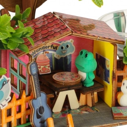 La construction combine bois et plastique pour un assemblage facile et une bonne durabilité. Les enfants exercent leur précision lors de l’assemblage des pièces, apprennent à prendre soin des plantes et créent en même temps une décoration originale pour leur chambre. L’emballage contient également des autocollants pour finaliser la scène.
