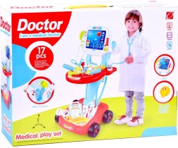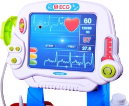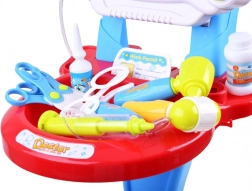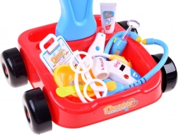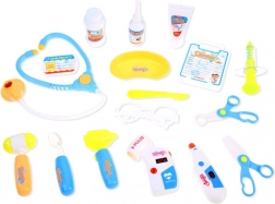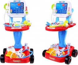- Chariot avec moniteur, lunettes, stéthoscope, thermomètre avec réglage et rétroéclairage, otoscope avec lumière, tensiomètre avec réglage et rétroéclairage, marteau neurologique, seringue, miroir dentaire avec lumière, 2× ciseaux, scalpel, bol, imitation de crème désinfectante, gouttes pour les yeux, boîte de médicaments, badge du médecin, carte du patient