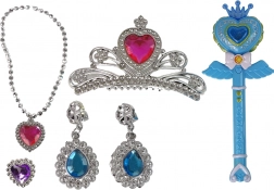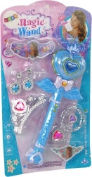 Pénétrez dans un monde fantastique avec la baguette magique interactive qui transforme chaque pièce en un ciel magique rempli d'étoiles. Il suffit d'appuyer sur le bouton pour lancer des lumières scintillantes et des mélodies féeriques. Le set comprend également des boucles d'oreilles, une couronne, une bague et un collier avec des pierres colorées.