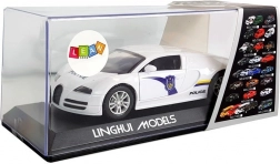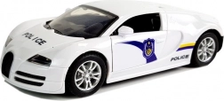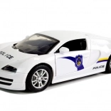 Devenez gardien de l’ordre avec cette voiture de sport de police compacte ! Grâce à la propulsion à rétrofriction (pull-back), aux effets lumineux et sonores et aux pneus en caoutchouc, elle offre un divertissement dynamique et sûr. La finition blanche avec des éléments bleus, l’inscription POLICE et les vitres teintées confèrent au véhicule un véritable caractère policier.