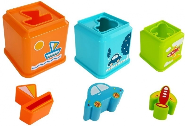 Ensemble coloré de gobelets carrés à motifs de véhicules pour un apprentissage ludique. Les enfants exercent la motricité fine, la coordination œil-main, la pensée logique ainsi que la reconnaissance des couleurs, des formes et des chiffres. Chaque gobelet possède une ouverture de tri (trieur) pour associer le bon véhicule et permet de construire une haute pyramide.