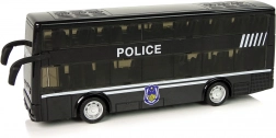 Autobus de police noir à deux étages pour enfants doté d’un mécanisme à friction (pull-back), d’effets lumineux et sonores et d’un intérieur détaillé. Grâce aux pneus en caoutchouc, la conduite est fluide, et les inscriptions POLICE avec emblèmes offrent un look attrayant. Un jouet idéal pour développer la coordination et l’imagination, livré dans une boîte cadeau transparente.