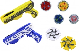Ce set dynamique apporte un duel d’adresse passionnant : chargez le disque dans le lanceur, visez et propulsez-le dans l’arène. Les disques métalliques tournent, s’entrechoquent et se disputent la victoire – gagne celui qui reste en mouvement le plus longtemps. Les effets lumineux amplifient l’expérience visuelle et attirent l’attention à chaque partie.