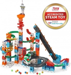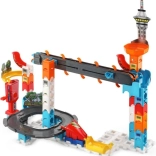 Vivez l’adrénaline avec le circuit à billes VTech Blesk – gratte-ciel. Les billes dévalent les virages, les spirales et les ponts, puis à la fin un petit train électrique les charge et un ascenseur les renvoie au sommet. Possibilités de construction illimitées, musique et sons délirants, 143 pièces et 10 billes pour un divertissement créatif en famille.