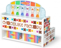 Le set comprend des « chocolats » en bois colorés, des outils et des accessoires, pour que les enfants puissent commencer à créer et à vendre dès le déballage.