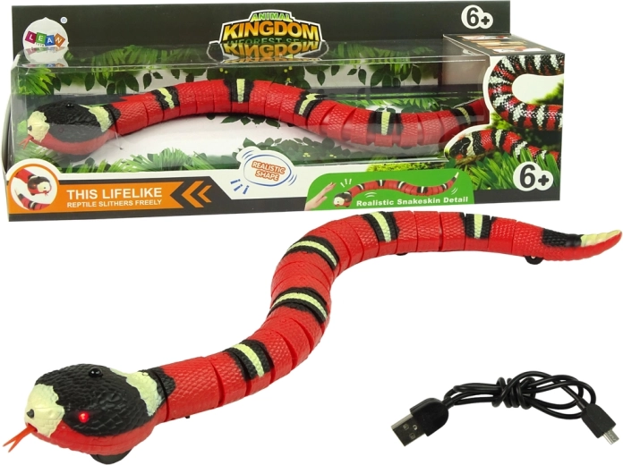 Découvrez le plaisir avec ce serpent réaliste de couleur rouge à bandes noires marquées. Le jouet démarre tout seul lorsque la main s’approche de sa tête, rampe en douceur, sort et rentre sa langue, et grâce à ses yeux lumineux il paraît étonnamment vivant. Parfait pour les enfants qui aiment les jouets atypiques et surprendre leurs amis.