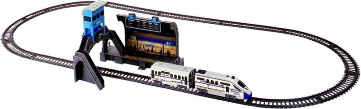 Ce circuit de train apporte un univers ferroviaire authentique dans la chambre des enfants. Une fois monté, vous obtenez un circuit stable d’environ 106 × 44 cm, parcouru par une rame moderne blanc et bleu. La gare, le pont et la station confèrent au jeu une atmosphère réaliste et favorisent des histoires créatives.