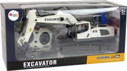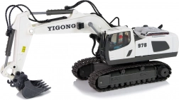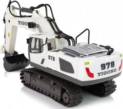 Cette pelle radiocommandée blanche aux détails noirs reproduit fidèlement une vraie machine de chantier. Grâce à la technologie 2,4 GHz, évitez les interférences et profitez d’un pilotage fluide. La télécommande à deux joysticks permet d’avancer/reculer, d’aller à gauche/droite, de faire pivoter la cabine et de travailler précisément avec le godet.
