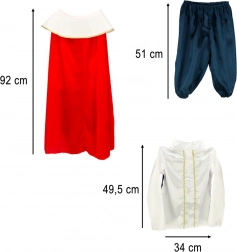 Faites appel à la créativité de votre enfant avec ce costume royal, idéal pour diverses occasions festives. Ce set en cinq pièces se compose d'un pantalon confortable avec élastique, d'une élégante chemise avec décorations dorées, d'une ceinture dorée, d'une cape rouge accrocheuse et d'une couronne royale. Le costume est pour les enfants mesurant de 110 à 120 cm, assurant un ajustement parfait et un confort pendant le jeu.