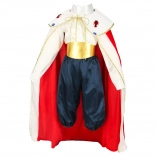 Le costume comprend un pantalon, une chemise, une cape, une ceinture et une couronne dorée, transformant votre enfant en roi.