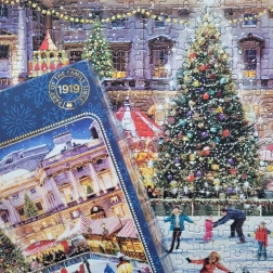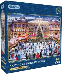 Le puzzle "Patinage à Somerset House" de la marque prestigieuse Gibsons incarne le confort hivernal et la magie de Noël. Dans l'illustration fascinante de Richard Macneil, vous pouvez voir des patineurs glisser sur la patinoire, magnifiquement éclairée par les lumières de Noël et entourée de stands avec des boissons chaudes et des friandises. Ce motif apportera une atmosphère de conte de Noël londonien à votre domicile.