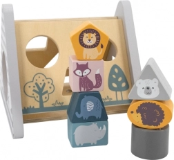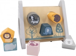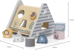 Le trieur POLARB en forme de pyramide « A » stable propose diverses découpes pour insérer des blocs colorés décorés d’animaux. Les enfants trient les formes et les couleurs, apprennent la logique et la patience, et s’amusent à trouver les bons emplacements.