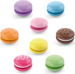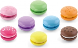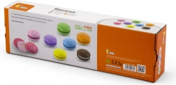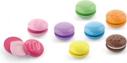 Le set comprend 8 macarons au rendu réaliste dans de douces couleurs pastel. Chaque macaron se compose de deux parties reliées par un velcro, afin que les enfants puissent facilement les « séparer en deux » et les réunir à nouveau – ils entraînent ainsi la prise en main, la coordination œil-main et découvrent des combinaisons de couleurs.