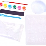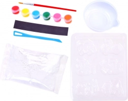 Tout ce qu’il faut est inclus dans la boîte : bol et bâton mélangeur pour le plâtre, pinceau, 6 peintures, bande magnétique et notice. Tu peux créer jusqu’à 6 aimants uniques – bulldozer, grue, bétonnière, rouleau compresseur, pelleteuse et camion. Un excellent cadeau qui encourage la créativité, la motricité fine et la patience.