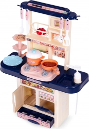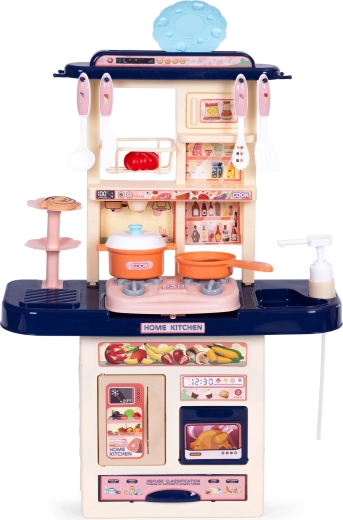 Offrez aux enfants un jeu réaliste dans leur propre cuisine. Lorsque les brûleurs sont allumés, un son de cuisson retentit et les plaques s’illuminent en rouge avec des LED. L’évier peut être rempli d’eau – une fois le réservoir connecté, le robinet fonctionne et l’eau coule vraiment.