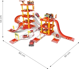 La grande caserne-garage de stationnement offre 4 étages pleins de divertissement, 100 pièces pour créer votre propre ville et des accessoires réalistes, dont une station-service, un héliport et 2 petites voitures avec un hélicoptère. Conception sûre sans bords tranchants, adaptée aux enfants à partir de 3 ans.