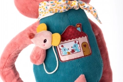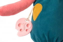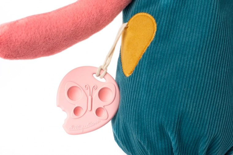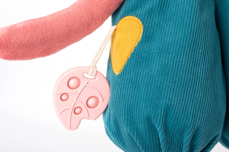 Des accents en forme de cœur et de nœud papillon, un foulard coloré et des coutures ludiques éveillent la curiosité des enfants et apportent de nouveaux stimuli à chaque contact.