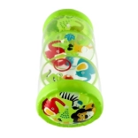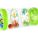 Le cylindre est décoré d'illustrations colorées d'animaux et contient trois balles qui, en bougeant, émettent un léger bruit, amusant et stimulant les enfants.