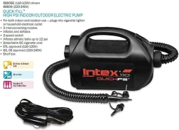 La pompe électrique universelle Intex Quick-Fill accélère la préparation des matelas, bassins, bateaux et autres produits gonflables. La double alimentation 12 V/230 V permet une utilisation aussi bien à la maison qu’en voiture, en vacances ou au camping. Son corps compact avec poignée pratique et le tuyau flexible facilitent la manipulation.