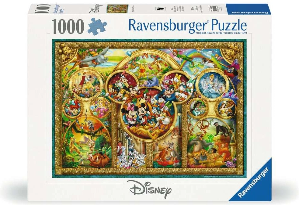 Découvrez le monde enchanteur de vos personnages DISNEY préférés avec la qualité premium RAVENSBURGER. Le puzzle de 1000 pièces est idéal pour se détendre, entraîner sa concentration et partager de bons moments en famille. La finition soignée garantit un emboîtement parfait des pièces et des couleurs intenses.