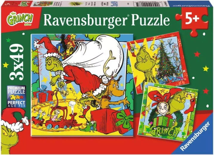 Puzzle Ravensburger Grinch 3x49 pièces apporte de la joie aux enfants et aux adultes avec trois images différentes, une qualité exceptionnelle et un design captivant.