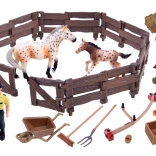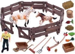 Ce set richement équipé transporte les enfants dans l’univers de la ferme. Il comprend deux figurines de chevaux fidèlement reproduites (jument et poulain), un fermier, un enclos et de nombreux accessoires comme une brouette, une fourche, un râteau, une auge et de la nourriture. Les détails réalistes, de la texture du « bois » sur la barrière à la robe des chevaux, stimulent l’imagination et des heures de jeu.