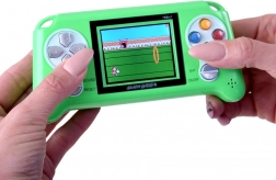 L’appareil propose un large choix de titres : jeux de logique, plateformes, sports et courses, mais aussi shooters et arcades. La console est fine et facilement transportable, tient bien en main et possède un verrouillage contre l’allumage accidentel dans un sac ou une poche.