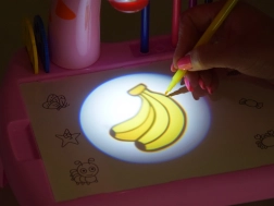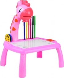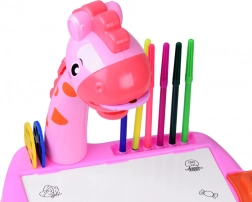 Développez l’imagination des enfants avec une adorable table de projection en forme de girafe. Grâce au projecteur intégré, aux diapositives interchangeables et à l’ensemble de 12 feutres, les enfants peuvent facilement décalquer les projections et créer leurs premiers dessins. Traçage facile, motifs amusants et organisation pratique des accessoires font de ce jouet un excellent outil pour un apprentissage créatif.