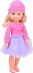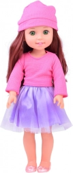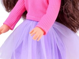 Poupée élégante de 36 cm, compagnon idéal pour les petites demoiselles. Grâce à ses longs cheveux bruns ondulés, que l’on peut peigner et coiffer, elle développe le sens de la mode des enfants et leurs compétences en soin des cheveux. Elle porte un chemiser rose stylé et une jupe violette, et avec ses chaussures et son bonnet roses, elle offre une allure élégante. Bras et jambes articulés facilitent la mise en pose de la poupée dans différentes positions, encourageant le jeu créatif et imaginatif.
