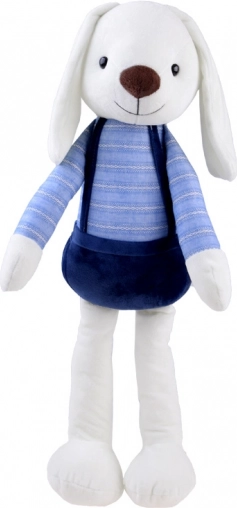 Adorable lapin en peluche de 60 cm fabriqué dans un matériau exceptionnellement doux et agréable. Il possède des yeux en plastique, un museau brodé et un sourire charmant. Habillé d’un t-shirt rayé et d’une salopette, il devient le compagnon idéal pour jouer, lire des histoires et se blottir avant de dormir.