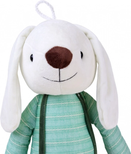Le lapin en peluche avec sa salopette stylée est le compagnon idéal pour la chambre des enfants. Grâce à sa surface toute douce, il est parfait pour les câlins quotidiens, la lecture d’histoires ensemble et un endormissement paisible. Le t-shirt rayé et le pantalon à bretelles verts confèrent au jouet un charme magique et intemporel.