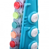 Ce saxophone coloré pour enfants développe le sens du rythme, l’oreille musicale et la motricité. À l’allumage, une mélodie joyeuse accueille l’enfant et les éléments rétroéclairés s’illuminent. Il peut écouter des morceaux préenregistrés ou jouer les siens – en soufflant dans l’embouchure et en appuyant sur les touches comme sur un véritable instrument.